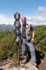 0812出発、0915茅ヶ岳登山口到着。すでに20台以上のクルマがとまっている。記念写真を撮ってから0924出発。中小の岩がゴロゴロした坂をゆっくり登る。気温は高くないが湿度が高く汗が流れる。1027女岩。岩の間か湧き出している清水を飲む。ここから稜線に上がるまでが本コースで最もキツイ登りである。ジグザグの登山道を喘ぎながら我慢する。1104尾根に出て休憩。少し上がると「深田久弥氏終焉の地」との石碑がある。言わずと知れた「日本百名山」選定の人である。この場所で脳溢血で倒れたとのこと。1135山頂着、昨日とはうってかわって晴天で、奥秩父の山々、八ヶ岳、南アルプス、富士山まで良く見える。山頂は樹木がなく360度の展望が得られるが日陰が無い。強い日差しの中、座り込んで昼食とした。下山は尾根ルートを行き1355駐車場着。