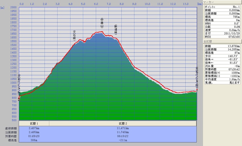 ペンションで用意してくれた弁当とカップ焼きそばを食す。食事をしていると上空をパラグライダーが飛んでいるのが見えた。1240出発、新道峠まではすぐで1300着。ここからはジグザグ道の連続で一気に高度を下げ1343林道に降りる。荒れた林道を歩き舗装道路に変わると大きな砂防堰堤があり、堤体の上を猿が一匹歩いていた。この一帯には多くの猿がタムロしており不気味である。別荘地の中をドンドン下り大石の村に出る(1430)。村の路地をGPS頼りに近道し1510ペンション村帰着。
