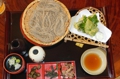 【二日目夕食】戸隠神告げ温泉の食堂にて「安兵衛そば」。安兵衛というのは食堂の名前で、入浴とセットで100円安い(入浴600円+安兵衛そば1000円=1600円が1500円となる)。安兵衛そばには野菜天ぷらと山菜の漬け物が付く。