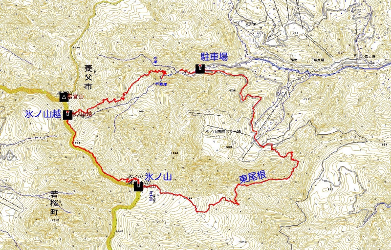 当方も仕度をして何気なく車道を歩き出すも、地図を再確認すると誤った方向であった(これが道迷いの始まり…?)。駐車場まで戻り道標を確認して沢沿いに歩き始める。いたる所に矢印や道標が(過剰なまでに)設置されており迷うことはない。650布滝を見物、木が生い茂っており全貌が良く見えないが落差65mという。その後の「不動の滝」も水の流れる音が聞こえるだけで滝の本体は望めない。だんだんと山道の傾斜がキツくなってくるが、美しいブナ林の中を吹き渡る風が気持ち良く高度を上げて行く。ジグザグの「曲がり坂」を過ぎて道が平坦になると「地蔵堂」に到着(725)。ここは加藤文太郎や植村直己が仮泊した場所だという。冬季には積雪3〜4mにもなるらしく、冬山の訓練でもしていたのだろうか。稜線上の峠である「氷ノ山越」には821着。立派な避難小屋が建っている。目的地の氷ノ山を遠望しながら尾根道を進む。ブナの根が露出する道を登って行き、最後は木段道を数度折り返して山頂には931到着。