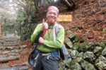 一度も休まずに憑かれたように頂上を目指したのだったが、愛宕大神に辿り着いたのは前回よりも2分遅かった。神社にてお札を頂戴し、神官からいろいろな説明を受けて小休憩。山頂は風が強く寒い。50分程休んでから1120下山にかかる。水尾分かれにて水尾の里方面に下る。広くて快適な道が続くが傾斜は急である。どんどん下り1215水尾の集落に至り、「やまじゅう」には1223着。「やまじゅう」とは風呂付き食事処である。水尾の里にはこのような店?が多数ある(要予約)。まずは名物柚子風呂に入り汗を流す。その後「鶏の水炊き」を堪能。三時間ほど宴会し、店のクルマでJR保津峡駅まで送ってもらったのだった。
