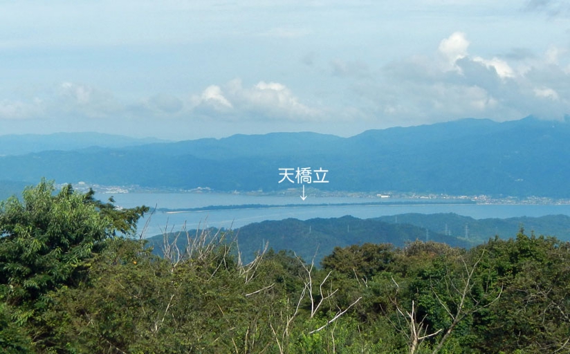 西峰からの眺望は素晴らしく、栗田半島から天橋立まで綺麗に見渡すことができる。小休憩し、今度は東峰へ向う。来た道を戻り958東峰着、昼食休憩とした。東峰からは由良川河口と川を渡る鉄橋を望める。ちょうど汽車が通過したのでデジカメを最望遠にして撮影、とても気持ち良い。