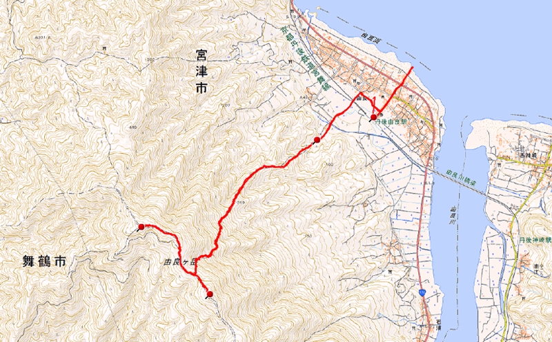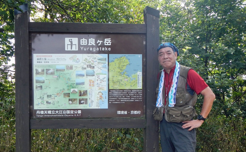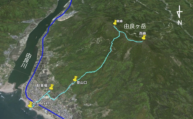 前週に歩いた「芦生トロッコ道」は由良川最上流部の森だったが、今週は由良川河口に聳える「丹後富士(由良ヶ岳)」を登った。今回のテーマは「Sea to Summit」。つまり砂浜で海水に手を浸し(海抜ゼロ)、そのまま山頂まで登り三角点にタッチするという趣向である。山の標高分を正味登るという意味だが、海岸近くの山でなければなかなか実行困難である。