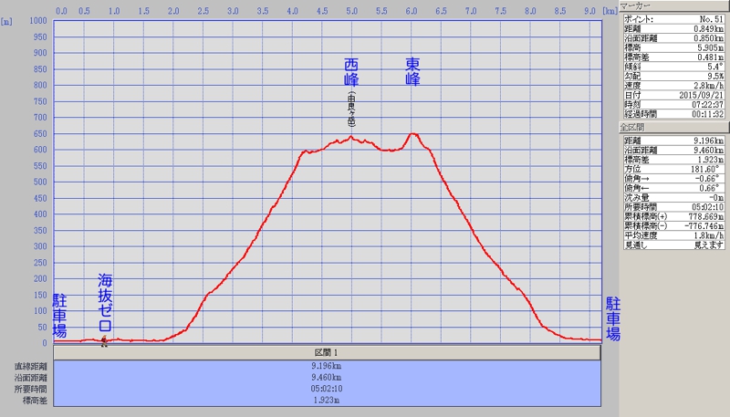 標高が低いので軽く考えていたが、なかなかに登りでのある山だ。途中までは歩きにくい溝状の登山道でその後は急傾斜が続く。しかし山頂からの眺望は秀逸。暑い時期の登山は全くお奨めできない。出会った登山者は11名。