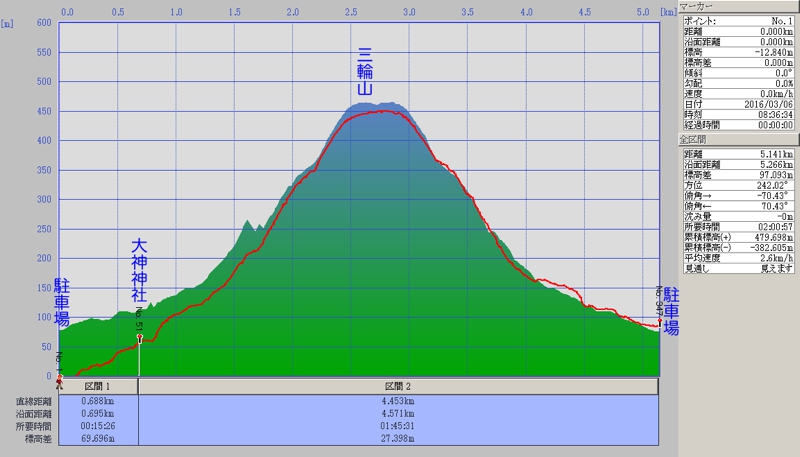 三輪山のお奨め度は5である。レポートできない山行は初めての経験でありとても珍しい体験ができた(戴いたはずのパワーは実感できない)。鳥見山のお奨め度は2。駐車場の公園付近はツツジや桜の名所とのことなので、シーズンには良さそうだ。