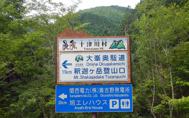 高槻を早朝3時30分に出発、近畿道から南阪奈道路を走り、五條から国道168号線を南下する。この道は十津川村に入ると国道とは思えないほど道幅の狭い箇所が多くなり、また所々で土砂崩れ災害復旧工事が行われている。「谷瀬の吊り橋」手前で林道に分け入るが、これが長い。途中「旭貯水池」という巨大なダム湖があり、その説明看板を見て唖然とする。何とこのダムは関西電力の揚水発電設備なのであった(奥吉野発電所、ここは下部貯水池)。ダム湖に沈んだ村の記念碑が立っているが、ムダで傲慢な設備によって故郷を追われた人々を思うと悄然とする。
