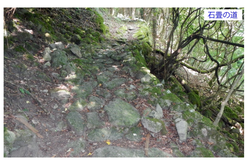 当方は桔梗平を目指して大洞山を降りて行くが踏み跡が判然としない。途中から石階段に変わり東海自然歩道に出ることができた。この道は大洞山を巻くように作られており、平坦な石畳道だ。誰が岩を敷き詰めたのか分からないが、かなりの労力を要したと思われる偉大な仕事だ。埋められた岩の上を快調に歩き、915倉骨峠に戻った。