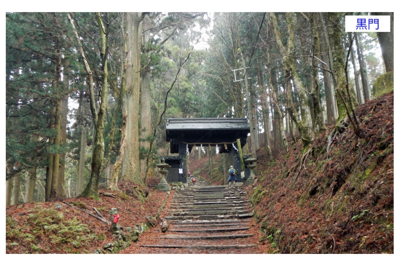 登山道は道幅が広く迷う心配はないが、全体を通して階段が多くキツいコースである。特に社務所のある山頂部から本殿に登る最後の石段は段差が高くて大変だ。ルート中、眺望はあまり得られない。ひたすら登るのみで面白味は少ないが、そもそも信仰の山なのでハイキング気分で歩く場所ではない。