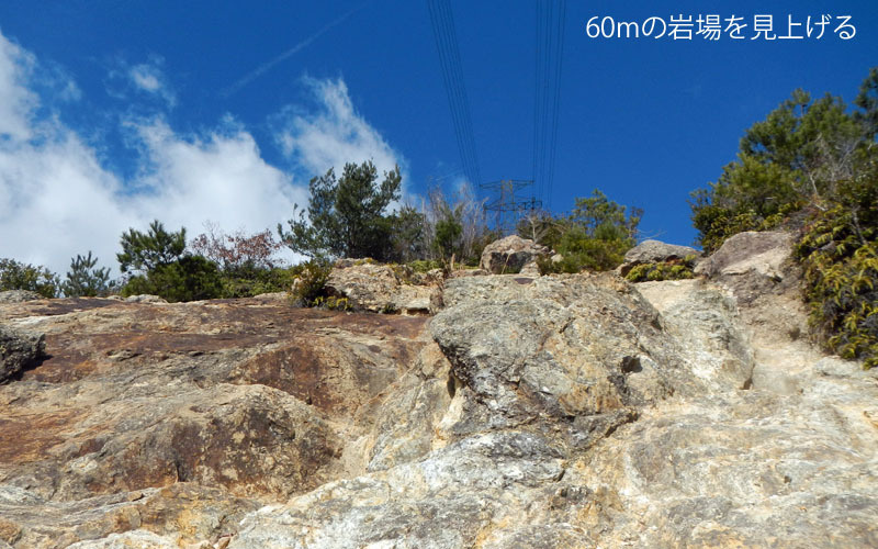 中山連山の最高地点を目指すが、それらしき場所には何の標識もない。二等三角点がポツンと埋まっているだけである。その場所で一服休憩し尾根道を進む。展望の良いピークを過ぎたところでルートを間違えてしまった。道がだんだんと狭くなるので変だと思って引き返したのだが、肝心な分岐点に標識がないのが不思議である。気を取り直して小さなアップダウンを進んで行くと、有名な「60mの岩場」に出た(1110)。ここは露岩の急斜面が続く場所だが、手がかり・足がかりが豊富なので苦労することは無い。スリップしないように注意して降りると、すぐ脇に民家が見える。ここが下山地点だと勘違いして二度目の道迷い。