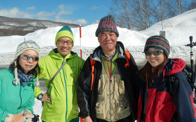 物産館のトイレを使い、スノーシュウを装着して歩き出す。柳沼、青沼、るり沼と次々に現れる湖沼を眺めながら行く。特に水色の「るり沼」は美しく、その色が青空に映えている。さらにいくつかの沼を過ぎ、1309五色沼入口に到達(今回ルートでは終点)。ビジターセンターで磐梯山噴火の歴史などを学び、路線バスにて休暇村へ戻る。夕食後は部屋でのミニ宴会で会津の日本酒を試して早めに就寝。