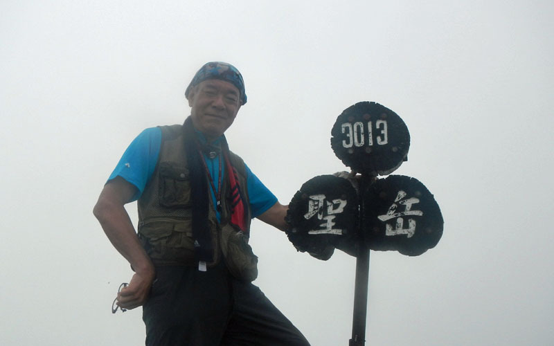 4時前に起床、430から朝食をとり530出発する。聖平の草原を過ぎると早速の登りが始まる。短い登りと平坦地の繰り返しを1時間ほどこなし、小休憩。高山植物のお花畑を愛でながら稜線を行くと、聖岳への本格的な登りが始まる。急傾斜をジグザグに登る。山はガスの中で、終点が見えない。ひたすら足下のみに注意し高度を上げる。頭が無になる頃、8時12分に3013mの聖岳山頂に立つ。頂上部は広く、大休憩。どら焼きを補給する。