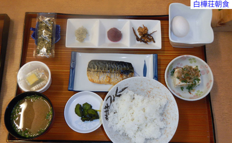 畑薙第一ダム行きのバスは時刻通り950発車、なんとガイドが同乗している。その説明によると、この登山バスは特注の車体だそうで、沿道で写真を撮るバスマニアが多い(バスマニアなる言葉を初めて知った)。途中二回のトイレ休憩を挟み、1315臨時駐車場着、終点には1325に到着した。実に3時間半のバス旅である。バス停の待合所で昼食(京都駅で購入した駅弁)。観光協会のバスを待ち、1400白樺荘着(一泊二食で6990円とリーズナブル)。入室して即宴会し、その後入浴。お湯がヌルヌルし、なかなか気持ち良い風呂である。夕食後に再度入浴し、早めに就寝。