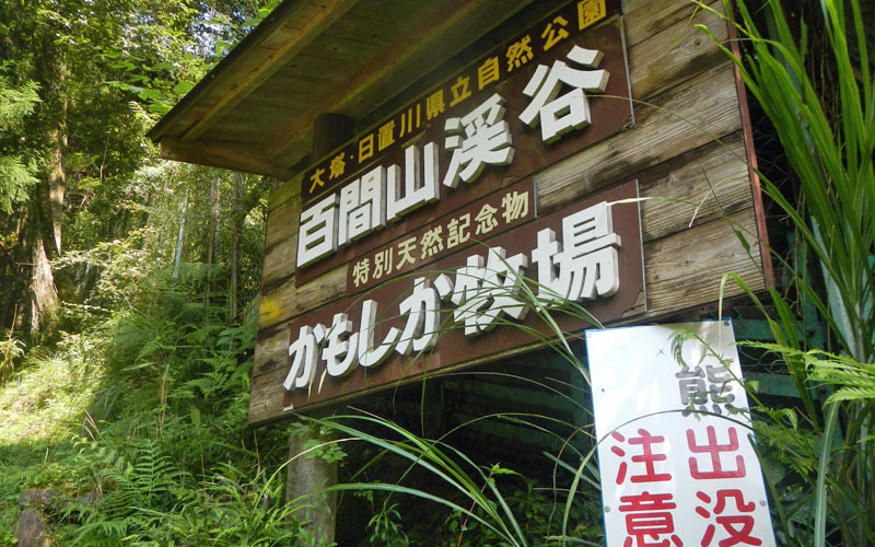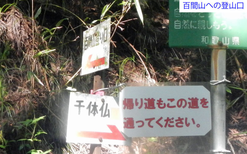 高槻から田辺まで阪和道を2時間ほど走る。南紀田辺ICで降りて、熊野古道中辺路の道(国道311号線)を行く。途中から南へそれて国道371号線を合川ダムで分れ山中を走る。その道路の終点に広大な駐車場があり、百間山渓谷の入口だ。駐車場には真新しいトイレ、休憩所が設けられている(1025着)。仕度をして1034出発した。