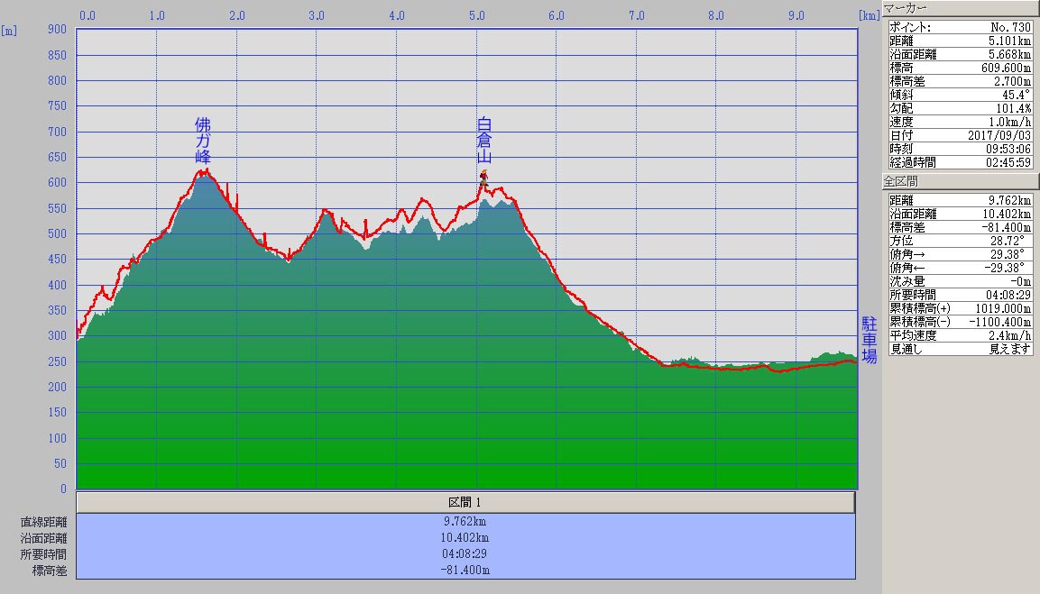 前日の百合ガ岳に続いて川上村の山を物色し、佛ガ峰〜白倉山を結ぶ稜線が周回コースをとれて面白そうだったので歩いてみた。実際に歩くとルートは不明瞭で登降がキツく、なかなか手強いコースだった。