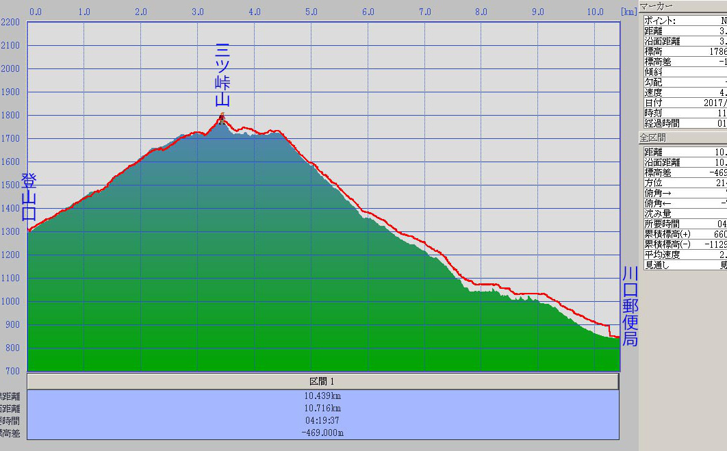 9時に河口湖駅に集合し(♂6名、♀3名)、タクシーで登山口に向かう。登山口の標高は既に1297mあり、三ツ峠山までの標高差は500m弱だ。支度をし946出発する。このコースは山頂直下まで林道を行くものである。林道と言っても4WD車がやっと通れる程度の荒れた道だが、頂上部にある小屋等への資材運搬用の作業道のようだ。この道を淡々と登る。