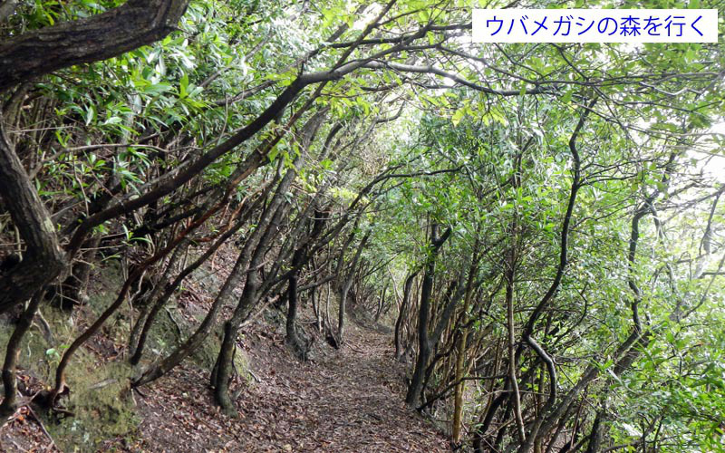 低山だが歩きでがある。細く背の低いウバメガシの林を歩くのが、とても気持ち良い。出会った登山者はゼロで静かな山歩きを楽しめた。